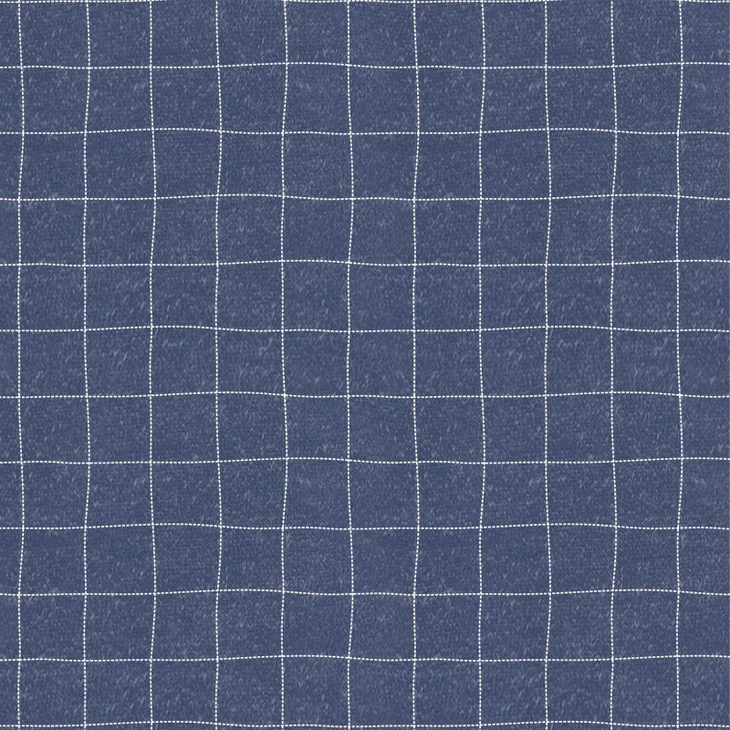 Tela de algodón efecto denim básico con estampado de suave cuadricula en blanco. Adecuada para coser prendas como camisas, faldas y pantalones fresquitos.
