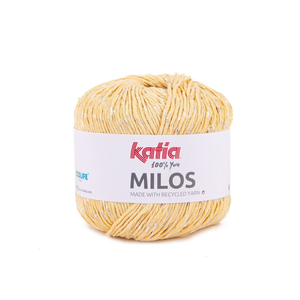 Milos ‘Made with Recycled Yarn’ es un hilo reciclado compuesto de poliéster procedente de botellas de plástico y algodón. La elaboración de Milos cuenta con la garantía de ECOLIFE yarns y su sistema de fabricación sostenible. Cuando tejes con Milos estás haciéndolo con un material cuyo impacto mediambiental es mucho menor que el de otros hilos convencionales. Además de las ventajas ecosostenibles, Milos es un hilo creado para tus prendas más brillantes: disfruta del efecto metalizado de sus mini lentejuelas o pailletes.