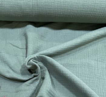 Es un tejido delicado, super suave y perfecto para la delicada piel del bebé. Posee dos capas juntas de la misma tela unidas en muchos puntos que hace imposible separarlas, por eso se la conoce también como doble gasa. Tiene una textura ligeramente arrugada, muy similar a la bambula.